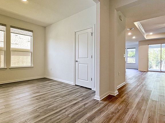 Welcome home to 107 Middle Creek Rd! This incredible Prestige floor plan is located in Sun City-an active 55 and older community! Viewings of this property will be by appointment only Monday thru Friday between 10am to 4pm. 24 hour notice is required to ensure agent availability. Located in the new home build section of Sun City, this new Prestige floor plan provides 2027 square feet of spacious living with 2 bedrooms, 2.5 bathrooms, a flex space and ample amounts of storage! Beautiful hard flooring throughout. The kitchen is truly the heart of this home with loads of counterspace, modern kitchen cabinetry that features pull out drawers and soft closing mechanisms, decorative backsplash, stainless steel kitchen appliances and a gas range. The gathering space has a trey ceiling, ceiling fan and is wired to connect your entertainment devices to the speaker system in the living room, kitchen, cafe and hallway. The Owner's suite is a wonderful space to relax and unwind after a day of Sun City activities. The Owner's bath has a dual raised vanity, a zero-entry glamour shower with bench and a rain shower head. There are two (yes two!) walk-in closets in the Owner's bath. A laundry chute in one of the primary walk-in closets makes it easy to dispense laundry directly into the laundry room. The chute also features a lock to maintain privacy in the primary walk-in closet. Enjoy the comforts of working from home or indulge in your favorite hobbies in the flex space. Your guests will enjoy their own room with an ensuite that features a raised vanity, walk-in shower and their own walk-in closet. Each of the bedrooms has solar shades with blackout curtains to block out the light while you enjoy a mid-day nap. The triple slider in the gathering room opens to the spacious, covered back patio that overlooks the greenspace behind the property. Views of the greenery behind the home can also be viewed from the cafe, gathering room and Owner's suite. The 2-car garage has a beautiful epoxy floor and insulated garage door panels. The minimum lease term required to lease this property is 12 months. Pets are not permitted at this property. The age requirement to lease this property is 55 years of age or older (this property is located in an age restricted community). The Owner pays the yearly HOA dues and the basic lawn maintenance (mowing, edging and blowing). Anything more than the basic lawn maintenance will be up to the Owner. Tenants are responsible for the watering of the landscaping per the City of Georgetown water restrictions, the rent, utilities and the pest control at the property. The refrigerator is the personal property of the Owner. Repair or replacement of this appliance will be up to the Owner and is not guaranteed. Tenants will be responsible for providing their own washer and dryer during a lease term. The security deposit for this property is $2500 due at signing. The first month's rent will be due 2 weeks prior to move in. Application fees ($75.00 per person) and the admin fee ($60) are non-refundable. Renter's insurance is required and must be submitted to The Stacy Group, LLC. prior to the start of the lease term if approved. We encourage prospects to apply for the home once they are 100% sure they are ready to move forward with leasing this property. We do not hold properties. Smoking is not permitted at this property.