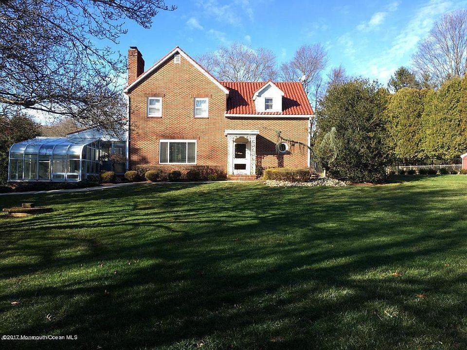 SPACIOUS RED BRICK COLONIAL IN TRANQUIL PARK LIKE SETTING. CLOSE TO EXIT 114 GSP. 5 BEDROOMS, 2 BATHS, FINISHED WALK OUT BASEMENT. 2 CAR GARAGE WITH WORKSHOP. CONCRETE SWIMMING POOL, TENNIS/BASKETBALL COURT. NATURAL POND AND 2 GLASS PORCHES TO ENJOY THE COUNTRY-LIKE SETTING IN BEAUTIFUL HOLMDEL RENOWNED FOR ITS SUPERIOR SCHOOL SYSTEM. NOTE: OWNER WILL CUT GRASS AND SHRUBS.