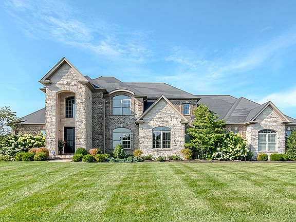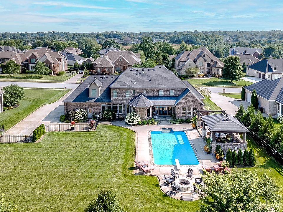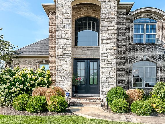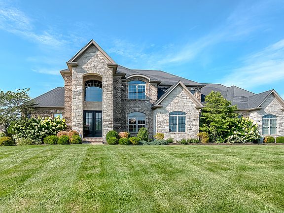 Introducing 107 Mill Rock, an exceptional residence in desired Clays Crossing. This all brick with stone accents Executive Two Story boasts lush curb appeal & the elevated lifestyle you have been looking for. A spacious well curated floor plan custom built for approx 7,988 +/- SF & has 6,465+/- Livable SF currently, offers five full ensuite bedrooms with the Primary Suite on the First Floor with a spa like appeal, two large custom walk in closets & double tray ceiling. Be greeted by an eye-catching custom staircase to set the tone for this well appointed home. A formal dining room & living room can start the entertaining areas with gleaming hardwood on first floor. An inviting great room with a contemporary fireplace is open to the gourmet style kitchen, granite countertops, gas cook top, double ovens with nearby pantry & breakfast area to enjoy the views of the inviting fenced back yard. The office, drop zone & laundry room completes the first floor. The upper level has four generous size guest ensuites, one could be a second primary, & a study nook with a drop shut to the laundry room. The partial finished walk out basement with storm shelter & storage, features a large wet bar,. double sided stone fireplace, a full bath, natural light & lots of room for game day. The best for last is the impressive outdoor space. The place to be will be the inground saltwater heated pool. Enjoy the setting with the covered veranda, fire pit & grilling area. The pool is now open. The oversize driveway for parking, lots of trees added for privacy, irrigation, geothermal system, three car garage and so much more in this immaculate Home.
