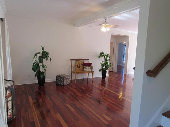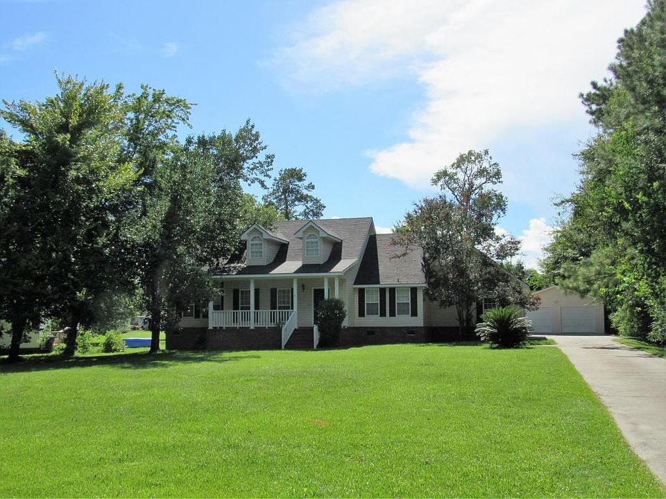 Charming Country Home on almost an acre of land! Plant a garden, add a pool, or work out of your separate, additional two car garage. Full front porch welcomes you into the lovely home with gleaming hardwood floors and tongue and groove ceilings. Lots of natural light floods into the living and dining room. The large eat in kitchen has a bay window overlooking the huge, private back yard, a pantry, lots of cabinets, and solid surface countertops. The laundry room is right off the kitchen and a bonus room is above the attached two car garage. The master is separate from the other bedrooms, with a walk in closet, separate shower and a lovely claw foot tub. The upstairs suite is very large with a private bathroom, large walk in shower and lots of storage.