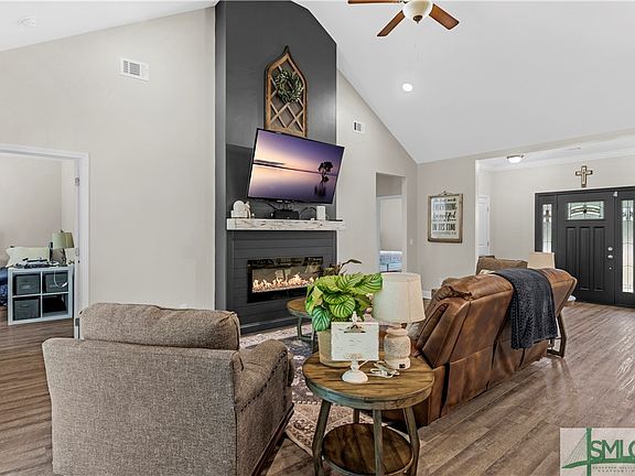 Welcome to a stunning 4-bedroom, 2-bath home built in 2022, perfectly situated on 2 private acres in desirable Effingham County. This exquisite residence offers the best of modern living with no HOA restrictions, allowing you to fully enjoy your space and freedom. Step inside to an expansive open-concept floor plan featuring designer finishes, a custom electric fireplace, and abundant natural light throughout. The chef’s kitchen seamlessly flows into the living and dining areas, ideal for both entertaining and everyday living. The oversized garage provides exceptional storage and workspace, while the fully fenced backyard ensures privacy and security — perfect for pets, gatherings, and outdoor enjoyment. Relax year-round on the spacious, covered front and back porches, designed for luxurious comfort and Southern charm. This like-new home truly offers the perfect blend of privacy, sophistication, and functionality all within minutes of schools, shopping, and dining.