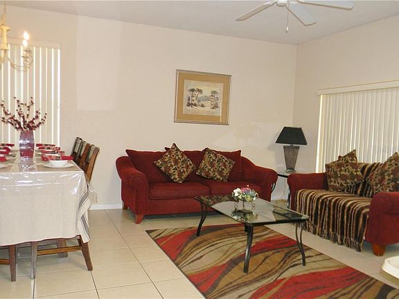 BACK ON THE MARKET! Buyers financing fell through! Enjoy owning your very own vacation oasis in the very popular, gated short-term rental zoned resort of Regal Palms. This well cared for, fully furnished 4 bedroom 3.5 bath END unit is conveniently located near the entrance gate, club house and amenities, no need to drive. Entering the tiled foyer, a spacious en-suite bedroom with separate entrance is located to the right. The kitchen boasts upgraded tile flooring, all appliances, breakfast area and pass through window. The dining area and living room are light & bright with plenty of windows to let the Florida sunshine in. This units open floor plan offers a living room with tile flooring and a flat screen TV. Upstairs you will find a spacious master bedroom, walk in closet, en-suite bathroom with garden tub and private balcony. Two additional bedrooms, hall bathroom and laundry closet with newer full size washer & dryer are also located on the 2nd floor. Regal Palms is a popular resort with close proximity to Disney. Luxurious amenities include a tropical pool featuring a water slide, LAZY RIVER and waterfall. Poolside Tiki bar, ON-SITE RESTAURANT, indoor & outdoor spa, sauna/steam makes for a relaxed carefree day without ever leaving the resort. Community activities include sand volleyball courts, fitness center, cafe, indoor play zone with 24 hour on-site reception desk. Fun for the whole family! This great location is only blocks away from Publix, restaurants and pubs. Make an appointment today!
