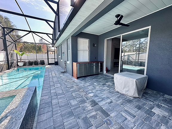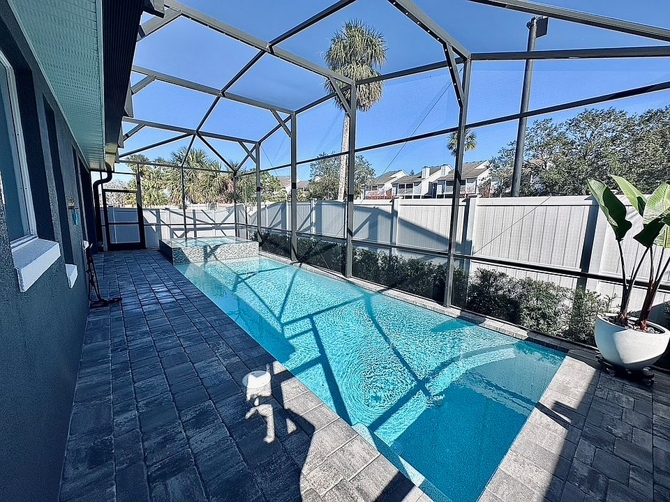 Step into a beautifully maintained residence featuring a brand-new screened-in modern saltwater UV Ozone heated pool and 360 spa, perfectly complemented by a custom-built outdoor entertainment area. Designed for both relaxation and hosting, the backyard includes a full privacy fence and elegant pavers, custom installed screened in cage LED pool lighting. Pool service, pest control, and landscaping are included, so you can enjoy the outdoor oasis without the hassle.