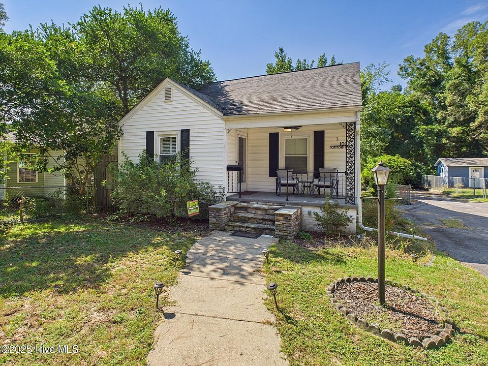 Welcome to 107 Montford St., a charming 3 bed, 2 bath home perfectly situated in Aberdeen, North Carolina. This residence offers an ideal blend of comfort and convenience, with a short commute to the vibrant downtown areas of Aberdeen, Pinehurst, and Southern Pines. Upon entering, you are greeted by inviting wood floors that flow into a versatile open space, perfect for dining or hosting guests. The kitchen is well appointed with ample cabinet space, a dishwasher, microwave, electric range, refrigerator, and a double sink, providing everything you need for meal preparation. The home's great room, located at the rear, is a cozy retreat featuring a carpeted floor, a skylight that bathes the room in natural light, and a sliding glass door that opens to the backyard deck. The master bedroom is a private sanctuary, featuring soft carpet flooring, a private laundry closet, and a stylish barn door that leads to the en-suite master bathroom. The master bathroom boasts tile floors, a single sink vanity, and a beautiful tiled walk-in shower. The second bedroom has wood floors and a closet, with a connecting door to the master bedroom, while the third bedroom also features wood floors, two closets, and a lovely view of the front and side yard. Step outside to discover your own private oasis. The backyard features a spacious wooden deck, ideal for relaxing and enjoying the fresh air. The fenced yard is enhanced with mature bushes and a large tree, providing both shade and a peaceful atmosphere. This property's location is unbeatable, offering a quick drive to some of the area's most desirable destinations, less than 15 minutes to Pinehurst Resort and under 10 minutes to delightful shops/restaurants of Southern Pines. Whether you're seeking a primary residence or a smart investment, this home, which also operates as a successful Airbnb, offers a unique opportunity to own a piece of the famous Moore County lifestyle.
