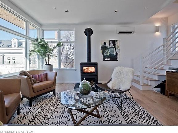 A stunning example of modern design, this sleek 2600 sq ft home captures the essence of the Munjoy Hill renaissance. Just completed in 2016 and designed by one of the regions premier architects. A gleaming sun-filled kitchen open to the spacious dining / living room spills out onto the patio. Commanding views of Casco Bay from every floor and a 3rd floor deck large enough to accommodate a summer soiree. State of the art energy efficiency, passive solar and heat-pumps create a beautiful living environment.