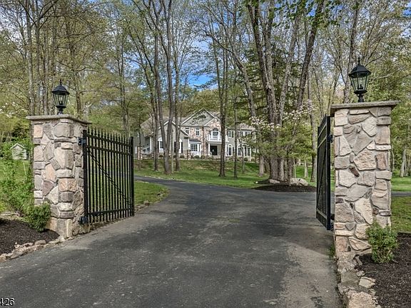 A handsome Bucks County Colonial with high ceilings, oak floors and generous room sizes is set comfortably away from this favored roadway that links Gladstone to Mendham. Meandering along the border of bucolic Pleasant Valley, Mosle Road is a treasured location known for its rolling terrain and beautifully wooded hillsides. Inside, the expansive 4,954 square-foot floor plan of five bedrooms and four-and-one-half baths contains a bedroom suite on the first floor that is ideal for family, guests or staff. The kitchen includes an informal eating area and a large granite-topped island providing abundant storage. Glass upper cabinetry on one wall complements wood cabinets finished in an appealing coffee-glazed finish. The adjacent family room is accented by a wall of windows with French doors opening to the patio and a fireplace surrounded in an antique carved pine mantle. Beyond, the light-filled library featuring a peaked ceiling and fireplace serves well as a spacious home office. On the second floor, the primary suite is arranged with a versatile sitting room, double walk-in closets and a gorgeous full bath with radiant heat flooring. Secondary bedrooms offer oversized walk-in closets. The full basement set under high ceilings is currently unfinished. Sited on 5.9 acres that include a separate wooded, farm-assessed 2.16-acre lot in Mendham, and the primary lot that is largely woodland-assessed, the taxes are low for the area. Offering the best in peaceful settings and urban conveniences, this home is within easy access to shops, restaurants, recreation and interstate highways.