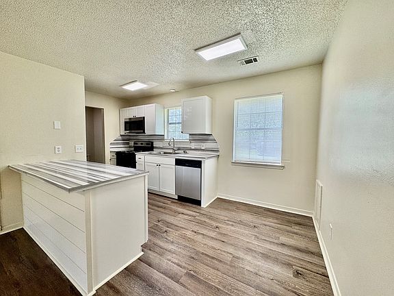Rare find in Harris County! This 3 bed, 2 bath home is just minutes from both the Middle and High School and offers 1,125 square feet of comfortable living space. You'll love the split floor plan with durable LVP flooring throughout, a spacious living area, and brand-new stainless steel appliances in the kitchen. There's a separate laundry room, an architectural shingle roof, and a huge backyard — all tucked away on a quiet dead-end street.