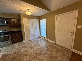 Stove, refrigerator, and dishwasher included all stainless steel. It has a place to hook up washer and dryer. Central air, heat, and ceiling fans.