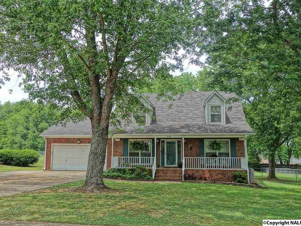Attractive cape cod style 2 story. Situated on over half acre lot with fenced backyard and room for gardening or many outdoor activities. Master on the main level and greatroom with wood burning fireplace. Breakfast area plus larger dining area off the kitchen. Inside laundry. You will love the covered deck approx. 15 x 15 to enjoy cookouts or simply read book or relax!! Only about 10 min. drive into Huntsville and near Mt. Carmel & Riverton schools. Also eligible for USDA 100% financing program--Near New Wal-Mart & Publix Grocery.