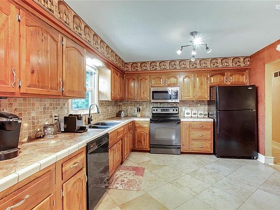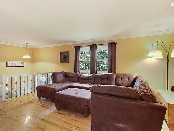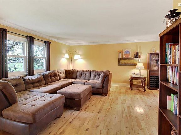 Honey stop the car! Large lot with fenced back yard and three tiered deck. Enjoy sipping ice tea on the front porch watching the sunrise or back watching the sun set. Extra deep/wide driveway for multiple parking spaces. Large main floor living room with hardwood floors. Kitchen has lots of cabinets and counter space. Two pantry closets. Three bedrooms and two full baths on main level. Finished basement w/stone fireplace and lg family room w/full bath. Newer windows.