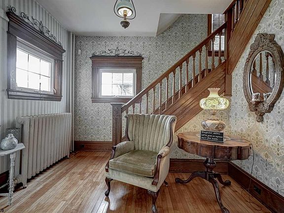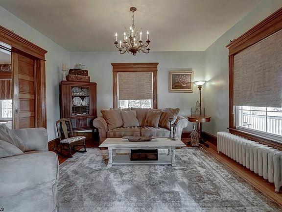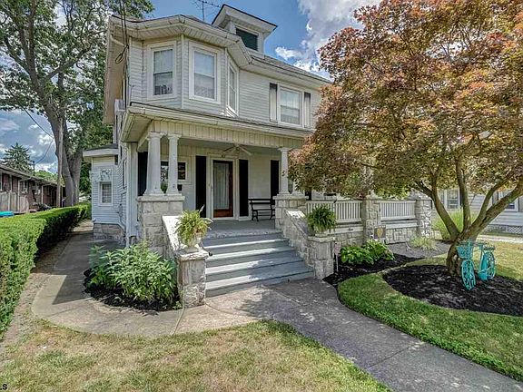 A Hammonton original. This home is One of a kind. This large 3 story colonial charms you as soon as you walk in from the original woodwork/moldings, to the Hardwood floors, from the hidden wooden pocket doors, the double wooden staircase and railings to the wraparound porch with Vermont Marble Stone. 4 bed 2 full baths with 2 car detached garage(with new doors) and partially finished walkout basement. 9 ft ceilings on 1st floor. This house has been NJ Clean Energy Program Certified (new insulation,windows,attics and basement sealed, doors and basement made air tight). The first floor features foyer, dining room, living room, eat in kitchen, full bath and family room. The walk up attic can be used as 4th bedroom, loft, office, playroom or storage. Under wrap around porch there is a wine cellar. Electric is updated 10 yrs ago. Partially finished basement with large playroom and other half used as bedroom. Laundry room in basement. Chimney has new stainless liner. Yard is large with fire pit and garden space. Sprinkler system front and back. Short walk into town to stores, eateries and public transportation.
