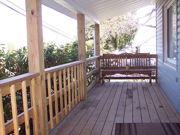 Spacious living room with hardwood flooring. Kitchen has ceramic tile flooring and opens to the dining room with laminate floors. First floor laundry room. Lots of space and potential on the second floor: Possible 3rd bedroom and den - just needs some TLC (paint/carpet). Sit and relax on the cozy front porch or entertain on the back deck. This charming home also features a 2 car garage and breezeway. Come take a look!