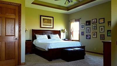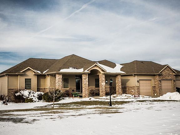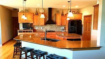 Imagine enjoying gorgeous sunsets over NE farm ground from your multi level deck, a street party for the 4th of July and an open floor plan great for entertaining! Home is situated on a large corner lot, has it all. The house features six bedrooms all with walk in closets, three and a half bathrooms, two gas fireplaces, and main floor laundry conveniently located off the garage. Beautiful granite countertops, gas range and large walk in pantry! If you are looking for an executive home, look no further!