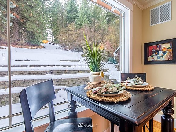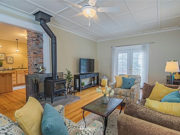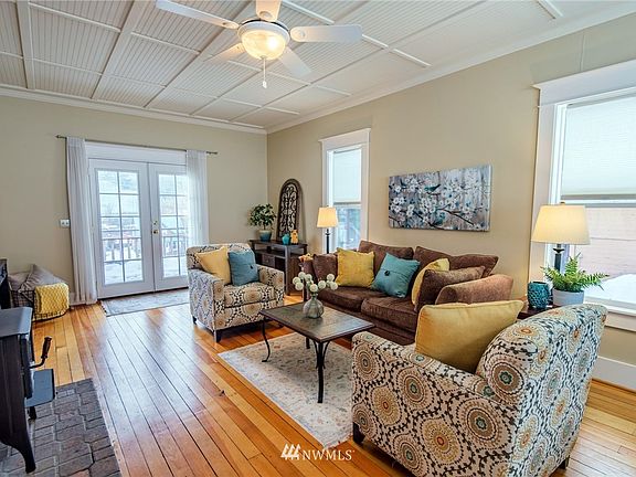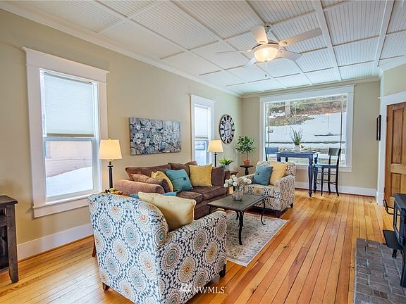 A hidden gem nestled on an oversized lot overlooking 5th Street in the heart of Roslyn! This home has been beautifully refinished w/meticulous craftsmanship. White beadboard w/crown molding presents a lightly coffered ceiling on the main floor. Crisp white millwork complements gorgeous refinished fir flooring throughout. Updated kitchen w/eating island & breakfast nook, bright bathroom w/wainscoting & tile bath/shower surround. French doors lead from living room to deck off front of the house, a large picture window provides views of the private terraced back yard & wildlife that visit. Upper level has two sleeping areas, although it is one large room. Laundry room & storage in unfinished basement. Wood stove & forced air furnace.