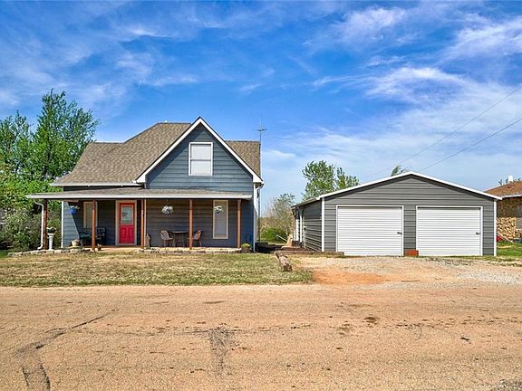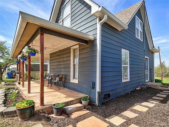 This farmhouse is loaded with character! Hardwood floors, interesting arched doorway, original doors & many windows that allow the natural light to flow through the house. The downstairs has the main bedroom & a full bath w/ a large laundry room/mudroom. The 2nd bathroom is located upstairs along with 2 more bedrooms and a bonus area that would be great for an office, play area, etc... The spacious backyard has many trees, some fruit (at least one apple), a cute playhouse & a GREAT patio for enjoying those summer evenings and cooking out. This home is in great condition with new carpet upstairs, newer HVAC, a huge storm shelter & 2 car detached garage with electric and enough space for cars AND a work area. Located in the extremely sought after Cashion school district.