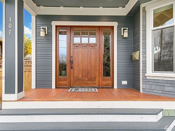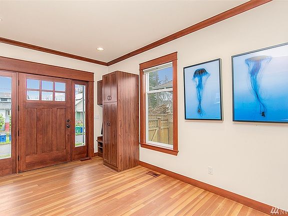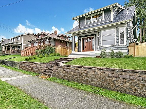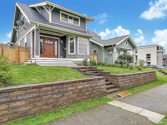 Completely updated Greenwood home is ready to enjoy! Many things to love & highlights include open flrplan, professional hardscaping, covered front porch, wood flrs, quality millwork, large bay window & strong architectural details throughout! Kitchen features granite counters, ss appliances, breakfast bar & plenty of storage. Master bedrm w/ bonus sitting rm for addnl flex space. Alley access w/ private parking pad. Near the best of Greenwood dining, shopping & more! Ez access to 99, I-5 & buses.