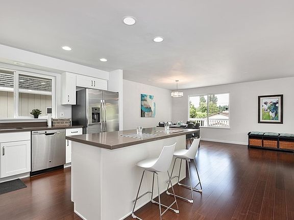 Available Now - Upper three-bedroom residence in a triplex located just steps away from Greenwood. This light and bright home has a charming and cozy feel! Three bedrooms, one bathroom with in-unit washer and dryer. Hardwood flooring in the spacious living room with plenty of space for dining. Stainless appliances, quartz counters, and island with breakfast bar in the kitchen. Private deck for outdoor BBQs or entertaining. Yard service included, and flat rate for all utilities of $285. Enjoy nearby coffee shops, grocery stores, restaurants, entertainment, parks, and more! Easy access to public transportation to downtown Seattle, Amazon campus and University of Washington. Soundview Park is just across the street and features two baseball fields, a soccer field, a playground for the kids featuring slides, swings and climbing features, walking trails, and plenty of open space for tossing a Frisbee. Come see why Greenwood is one of the fastest growing neighborhoods in Seattle! One cat okay with an additional pet deposit. Sorry, no dogs and no smoking. Nonrefundable cleaning fee included in the security deposit. For more information or to schedule a showing, please contact Netanya Richards at Avenue One Residential, Seattle, WA. Zillow does not permit links included in their ads. Please visit our website to view our screening guidelines. Click on the For Lease tab, and then select the Screening Criteria tab for details. #AvenueOneResidential #SeattleRentals #AmazonSLU #GreenwoodRentals #UniversityofWashington #MicrosoftConnector 12 month initial lease term.