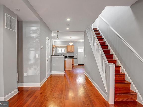RECENTLY RENOVATED 2 BEDROOM, 2.5 BATHROOM, WITH PARKING!!!. Recently renovated home with hardwoods throughout, custom kitchen including an island with seating, granite countertops, stainless steel appliances, dishwasher, garbage disposal, and custom lighting. The living room is located on the bright and open main floor that also offers dining. The main floor also has a powder room/half bath. The primary bedroom is complete with great natural light, a large closet, and a full, private bathroom. The hall bathroom has a one-of-a-kind custom-built tile shower and storage. The 2nd bedroom has new carpeting and its own balcony. The laundry is located conveniently on the 2nd floor in between the bedrooms!! The basement is clean and dry and great for storage. Easy parking in the rear!! Located in-between Johns Hopkins Hospital and Johns Hopkins Bayview Campus. Not far from Patterson Park and near commuter routes. Please contact the listing office today for a private tour. Buyers may be eligible for closing cost assistance or grants. Ask me!