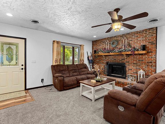 Don’t miss your chance to tour this charming and inviting home! The open floor plan is perfect for entertaining, with a cozy fireplace that adds warmth and character to the space. The kitchen offers ample counter space, a center island with breakfast bar (2020), hardwood floors (2020) and all appliances are included. You'll love the informal dining area for everyday meals and gatherings. Fresh new carpet (2025) has been installed in the living room and bedrooms. Step outside to enjoy the fenced backyard and covered deck—ideal for relaxing or hosting friends. Schedule your showing today!