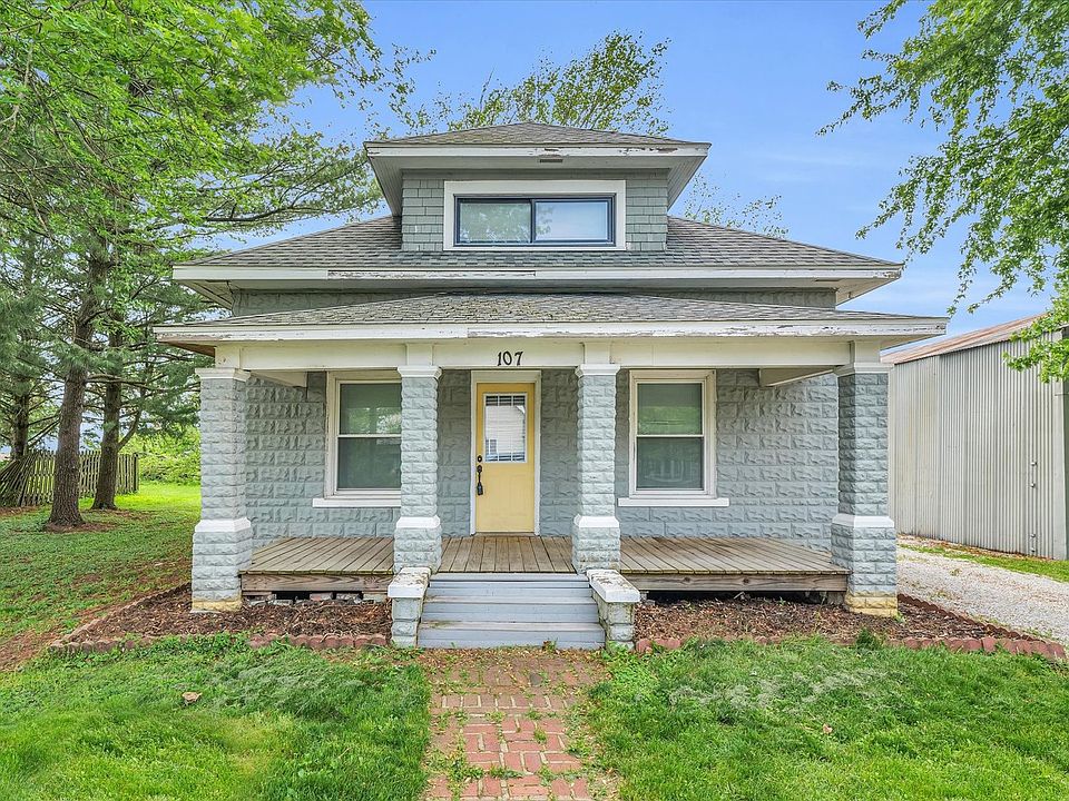 Step into the essence of small-town living with this solid concrete house, perfect for a first-time homeowner or savvy investor. Featuring an open floor plan, the main level hosts the primary bedroom while two additional bedrooms await upstairs. The kitchen and bathroom have been tastefully remodeled, offering modern convenience. A spacious mudroom/laundry room adds functionality. Outside, enjoy the covered front porch. Experience the essence of rural charm in this cozy home, ideal for those starting their homeownership journey or seeking a smart investment opportunity. Home is broker owned and pre-inspected.