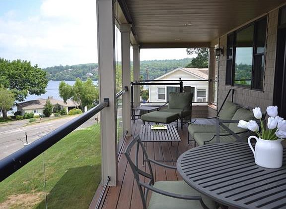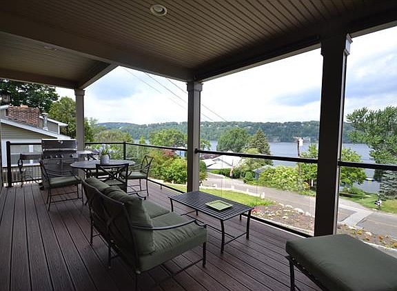 BREATHTAKING PANORAMIC VIEWS OF CANDLEWOOD LAKE on the point in Candlewood Shores. Pristine, custom designed & built in 2011 w/attention to detail. Enjoy the open floor plan, chefs kitchen w/large center island w/breakfast bar, top of the line appliances, large walk in pantry, great room w/gas fireplace, granite hearth, wired for surround, ML den/ BR, relax on the large covered deck w/glass railings, blue stone stairs. Gorgeous master suite, luxurious spa bath w/granite, double vanity, large walk in shower and tub with lake views, large LL family room and guest room. Hydro Air Propane Heating. Paved Belgian block edge drive & fieldstone walls. Dream heated (2 car), custom flooring, half bath. Please note 2 BR septic. EASY LIVING MOVE IN AND ENJOY. Walk to beach!