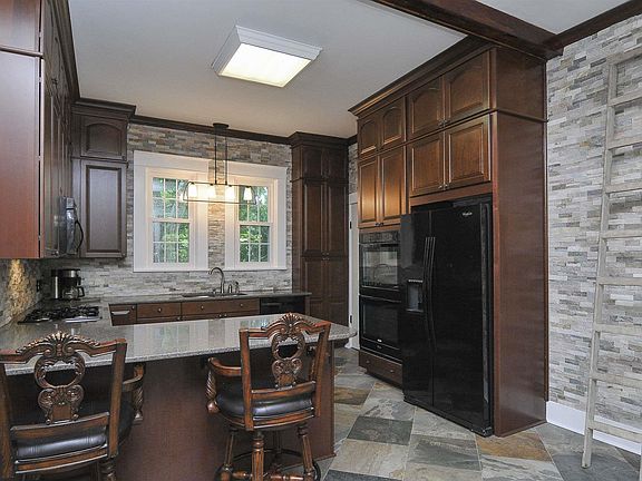 - Kitchen: Bar, Counter Tops-Granite, Eat In, Floors-Tile, Cabinets-Stained, Ceiling Fan, Backsplash-Other