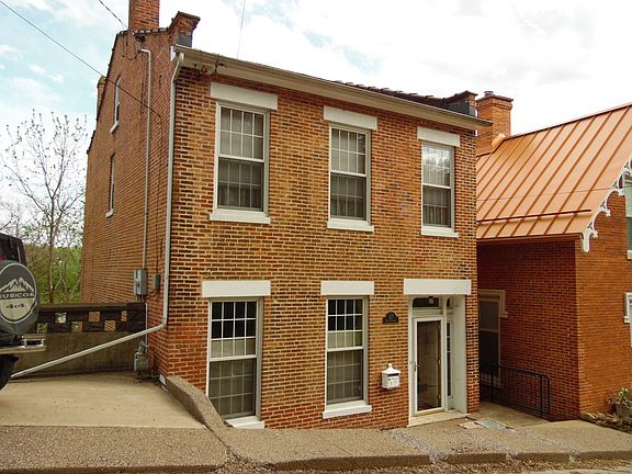 You'd never guess whats inside these Historic Brick walls - I was amazed to see how spacious this home is! Living room with gas fireplace opens to the Formal Dining room area. Upstairs is 3 bedrooms with a full bath complete with the original claw foot tub that has been refinished. There is a built in ladder/staircase that leads to the finished attic that Sellers has set up for Guests. Main level & Upper level have a covered porch that overlook Galena & the Galena River. (You could watch the fireworks from either deck!) Then the finished lower level is a walk out - it offers an office, a 2nd dining room off the kitchen, large laundry room with storage cabinets & a full bath. Off the kitchen you can walk out to the concrete patio where the gas hook ups for the grill are there for your grilling pleasure. Set high above the Bench Street homes, offers you privacy in your backyard with great views! Seller remodeled the home in the last 11-15 years - including roof, tuck pointing, driveway & sidewalks, new interior & exterior doors, wood trim, windows, porches, kitchen & bathrooms remodeled too. Water heater replaced 5 years ago. LL Furnace replaced last year. There are HVAC units for each level to keep temps at desired temperatures for each floor. Throughout most of the home are wood floors. Seller is offering the home furnished with a few personal exceptions. City of Galena is responsible for the rock wall. Survey on file at Listing office. Easement recorded & a copy provided as this garage corner is over the lot line.