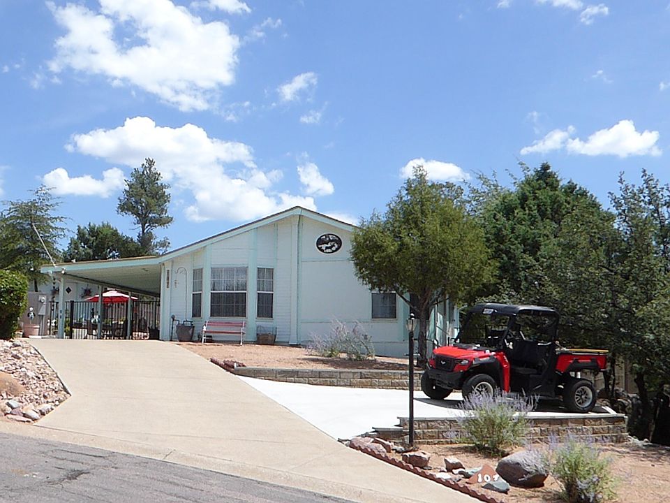 Exceptionally well maintained home in cul-de-sac with mountain views. The great room is ample with vaulted ceiling and newer vinyl plank flooring. The kitchen has newer refrigerator and microwave and a kitchen island with breakfast bar. The master suite is quite spacious and the bath offers a jetted walk-in tub with therapeutic lights and shower. Nicely sized guest room and 3/4 bath. Outside, you will find great patio with fencing that can open to safely store smaller vehicles such as an ATV, a storage shed with electricity and a fenced back yard with additional storage shed. This home is within walking distance to Woodland Meadows lake too! This home is ready for you, don't wait!