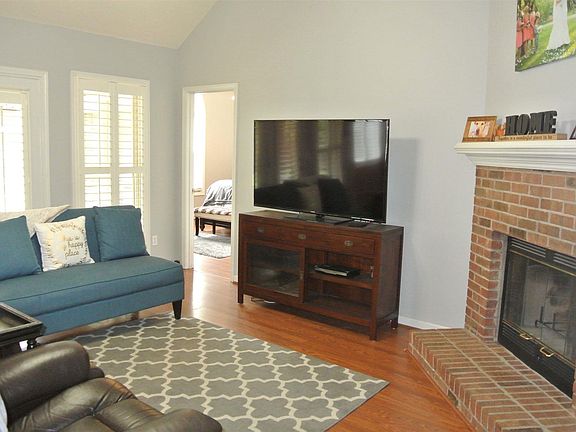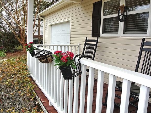 Charming 1 story home with 1 car garage and cozy front porch! Home features hardwood floors in all the bedrooms, hallway, eat in kitchen area and den! Den features brick FP. Open Eat- in Kitchen with wraparound bar, bay window- plantation shutters in Kitchen/Den. High ceilings. Master BR features access to screen porch, vaulted ceiling, walk in closet, double vanity, garden tub, and walk in shower! Great screen porch, patio, fenced in backyard!! Termite Bond! 2016 15 seer Trane HVAC!