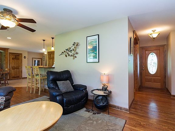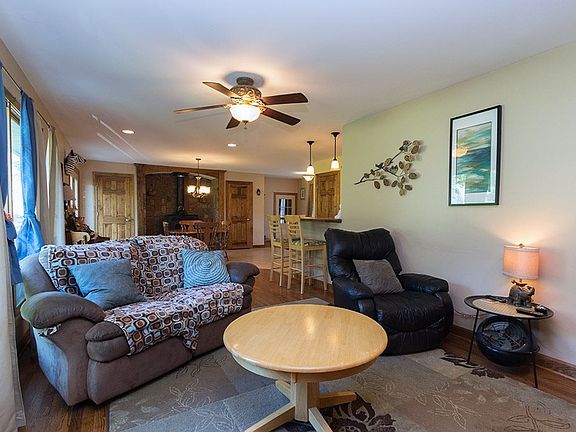 2.5 Acres. Great setting, W/trees & garden spot. Open consept. Newer Electrical, Newer plumbing.Newer doors, trim and flooring. Completely up-dated. 3 bedrooms and 2 full baths plus office in partly finished basement. Fenced. Deck on the front. Wood burning stove. Roof is 4-5 years old. Storage shed/playhouse in back yard. Rec room in basement. Newer cabinets & counter-tops in kitchen with eating bar. Exceptional trim moldings around doors. Open concept. Close to shopping.