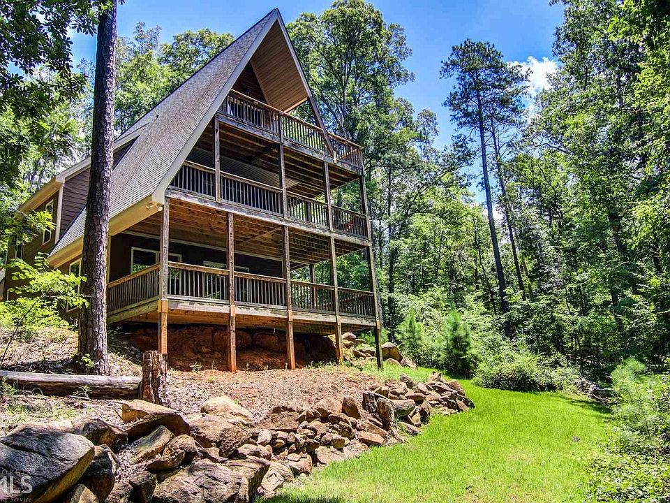 2 Lakeview/Greenbelt lots on Jackson Lake make this unique A-Frame a great value! Feels like a mountain retreat but just a short walk to the lake. 2 stories on a full unfinished basement with unlimited possibilities. Multiple wrap around decks. Seasonal view of the lake. Main level has a LR, dining area, kitchen w/stainless steel appliances, lakeside wrap around deck & a master bedroom & bath. Upper level has 2 bedrooms and a full bath with a wrap around deck. The full basement is finished It. Hardwood floors make cleaning a snap. Very clean & move in ready. Driveway alarm. Turtle Cove Community with 9-hole golf, tennis, pool, 5 beaches, boat ramps/dock & more. Escape to Peace & Quiet!!