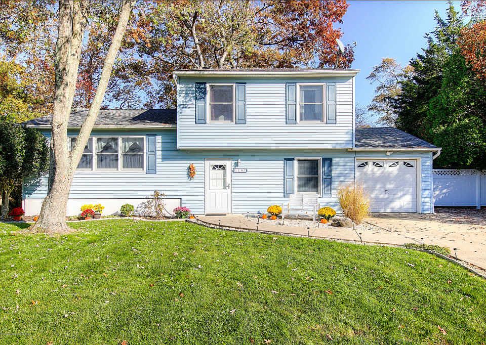 Home Sweet Home! 4 bedrooms, 1.5 bath bi-level home with in-ground pool in Little Egg Harbor is ready for new owners! Ground floor level features first floor bedroom/home office, half bath, family room with sliding glass doors to the backyard and laundry room closet, and has interior access to the 1 car garage. The main floor features living and dining area with hardwood floors connected by the kitchen with granite countertops, tile backsplash, and 42in cabinets. Upper level has the primary bedroom with dual closets & hardwood floors, as well as access to the tastefully decorated full bath with tub shower and skylight. 2 additional bedrooms with hardwood floors complete the upper level. Head outside to the large backyard with a BIG, fully fenced in-ground pool and patio area! Newer carpet