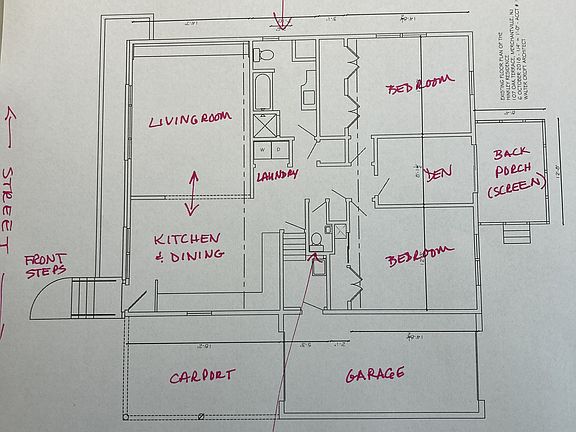 Cute mid-century modern one-level house with open plan layout for kitchen, dining area, livingroom. Fabulous windows provide great light. 2 large bedrooms with double-wide closets, 1 small bedroom (den/bonus - no closet in this room) and screen porch facing into back yard. Upgraded kitchen countertops and new refrigerator. Full primary bathroom with both bathtub and separate shower. Powder room for guests off living space. In-house laundry with full-size electric washer/dryer. New A/C with efficient dual fuel heatpump for heating/cooling. Note: There is both a carport and a garage with a long driveway into the back yard. Owner will be performing repair on garage door in early June. Current tenants use the garage for storage only. Initial lease term 9 months to March 31, 2026. NO SMOKING! Tenant responsible for all utility costs: water, sewer, electric, gas, internet. After March 31, 2026, lease term extension or month-to-month is possible. Owner is working with contractor to plan for upgraded driveway, changes to garage space, addition of solar panels along the garage roofline, etc. If tenant can be flexible while work is being done starting in Spring 2026, owner may be able to extend lease for tenant with revised terms beneficial to both parties.