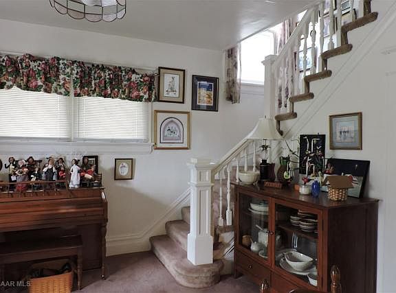 Charming traditional 2-story home within walking distance to downtown Staunton, Gypsy Hill Park and Staunton Library. Country front porch with swing for those relaxing evenings. Glassed back porch on back. Carpet over hardwood floors throughout 1st and 2nd levels. Large foyer and 10" ceilings on first level. Updated upstairs bath with new fixtures and soaking tub. Lots of storage.