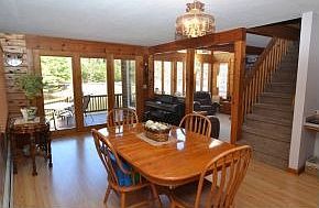 Waterfront log home with two-car attached garage. Sit on the wrap around deck overlooking the lake and enjoy the landscaped walkway to the private dock. Gorgeous fireplaced living room with cathedral ceilings and balcony with view of the lake. The master bedroom with slider to deck has a private bath with double sinks, shower, and jaccuzzi tub. Fully applianced kithen has huge walk in pantry. Dining room has slider to the deck and is open to both the kitchen and sunken living room. Possible 3rd bedroom in the basement, currently used as guest suite. The farmer's porch overlooking a private front yard welcomes your guests. Truly a meticulous property which has been lovingly maintained.