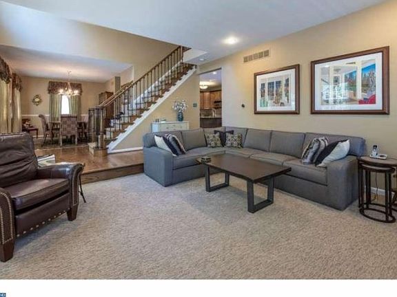 This fabulous carriage home in Belle Aire is nothing short of spectacular! Starting with the most premium location, this beautifully renovated home features a dramatic entry foyer with a new stair rail & wrought iron balusters, open to the formal dining room w / hard wood flooring and step down living room. You will love the updated kitchen with hardwood floors, maple glazed cabinets w/ walnut and bead board trim, granite counters, tumbled marble back splash, stainless steel appliances, French door pantry, breakfast bar and eating area. The Kitchen opens into the step down family room with remote control gas fireplace with stacked stone surround, stained oak mantle and flanking French doors leading to the updated spacious composite deck and private yard. The first floor also has a remodeled Powder Room w/ maple vanity, granite top and glass vessel sink. The Master Bedroom retreat features a customized walk in closet, shoe closet, dressing area and luxurious master bath featuring his and her vanities a makeup area, granite tops, a frameless walk in shower with rainfall shower head and custom tile. There are two additional large bedrooms with walk in closets, a convenient 2nd level laundry room and hall bath round out the second floor. The finished lower level boasts a gym, an additional Br, a powder room and ample storage. This wonderful home also features brushed nickel hardware throughout, a new HVAC system, two car garage with storage, stone paver driveway and manicured landscaping. The community club house and pool are conveniently close by and the property is just minutes away from 309 and access to major highways. Call today to set up your personal tour of this magnificent home!