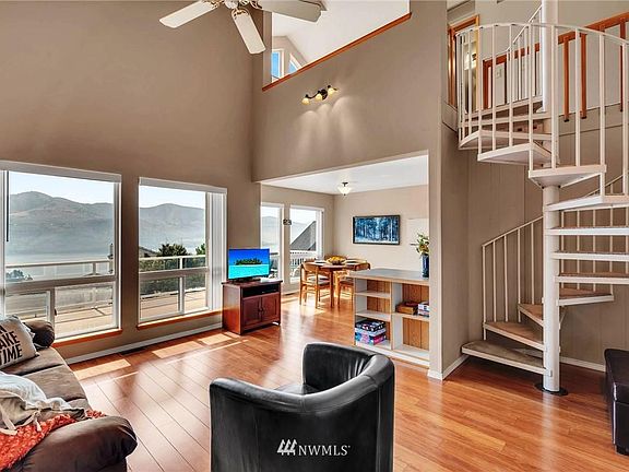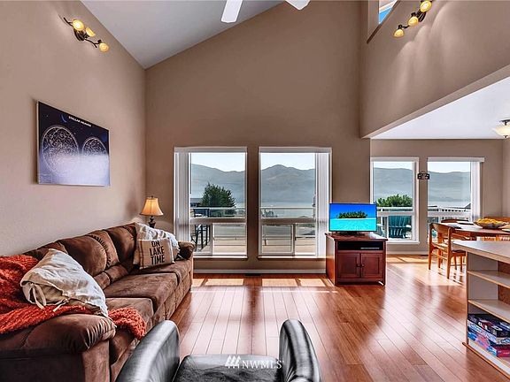 This CHELAN HILLS COMMUNITY WATERFRONT HOME was carefully designed to take full advantage of panoramic Lake Chelan & mountain views. Located on a very quiet cul de sac, this home has 2 bdrms and a large sleeping loft. Bathrms are located on the main & upper levels. Sporting new composite decking & glass railing, the deck off of the main level is perfect for entertaining, and the updated upper deck provides even grander views! The 2 car insulated garage & level lot, combined with the lifetime roof (2011), heat pump, new water heater, and all utilities included make this home move-in ready. Chelan Hills amenities include 2 waterfront parks, 2 pools (one w/playground is just 1 block from this home), boat launch, buoys, sports court & more!