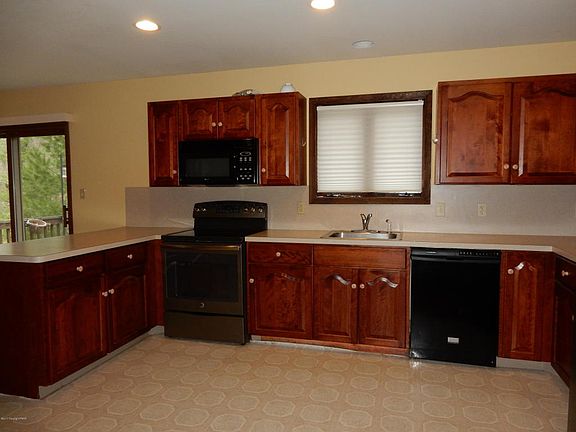 The Ranch you've been waiting for! 3 Bedrooms, 2 baths in Stroudsburg School District! Lovely stone faced fireplace with built in bookshelves. New carpeting in living room and hallway. Nice size Master bedroom with Master bath. Huge walk in closet. Beautiful Kitchen cabinets with eat in dining area. Private deck off kitchen. Perfect for BBQ's. Full unfinished basement would make a great rec room or hobby area. Large 2 car garage with paved driveway. Brick paver sidewalk. Nicely landscaped. Situated on a corner lot with public water and sewer. New HVAC system. Central A/C is a plus! Property backs up to green area. Short walk to lake. Home has been professionally cleaned. Move in condition. If you have been looking for the perfect ranch then you found it! Check this one out today!