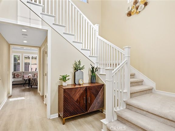 This lovely house features 3 bedrooms and 2.5 bathrooms with 1777 Sqft, a lot size with 2500 Sqft at Charming Cambria in the Stonegate community. Vaulted ceiling at entry, Largest model in the tract, premium paid for larger lot/backyard, Shows light and bright! Full house luxury upgraded flooring. Upgraded to tile floor on all bathrooms. Plantation genuine wood shutters on all windows. The entrance leads to the reception room, which has an open layout that allows entertainment to be seamlessly integrated into dining and cooking. There is an open layout, the space perfectly flows from a pretty living area to a well-stocked kitchen that flows naturally to your backyard. The open-concept floor plan has a huge great room with panoramic sliding doors. The open floor plan opens to a large living room dining room and kitchen with white granite counters, stainless steel appliances, and access to two car garage. The master suite features a separate bath and shower and a generous walk-in closet with a custom closet organizer. 2 nice size bedrooms with ceiling fans. Plenty of parking spaces just right on the corner. Walking distance to the Blue-Ribbon Awarded Stonegate Elementary School, Egret Park, and the tranquil greenery of the 5-mile Jeffrey Open Space Trail. Enjoy an abundance of resort-like community amenities: the junior Olympic pool, spa, sports courts, playgrounds, and clubhouse. Close to Woodbury Town Center, Market Place, Irvine Spectrum, the Great Park, and much more.