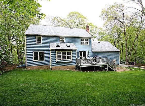Pretty in blue, this four-bedroom center-hall Colonial, sits high and dry overlooking the attractive neighborhood of Overbrook Road. Enjoy this view from a private, peaceful and manicured lot within easy access to commuter routes, schools and town. A nice open foyer greets you and leads directly into the family room with gas fireplace. Sliders open up to a trex deck where you can take in the private backyard bordered by a beautiful expanse of woods. The kitchen is well designed with plenty of cabinet space and two opening skylights and a bank of windows which help create much light. The dining room and living room finish off the open flow of the first floor. Polished hardwood floors throughout and freshly painted walls up and down, add to the warmth of this solidly built home. Bonus features include an attic cedar closet and wine cellar in basement. Finally, feel the peace of mind of having a 5500 watt generator, Upgraded Mechanicals, and Central Air!