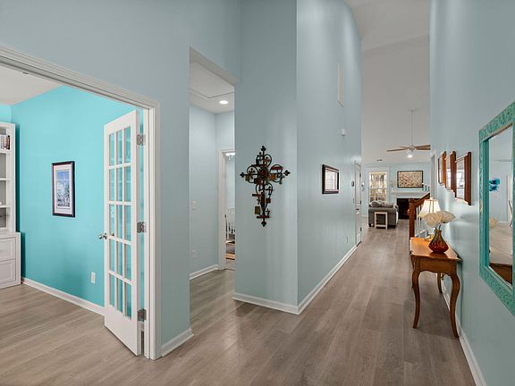 Welcome to Magnolia of the coveted Cane Bay Plantation, where your dream home awaits! This stunning 4-bedroom, 3-full bathroom home offers the perfect blend of modern elegance and charm. Nestled in a cul-de-sac, this home boasts an inviting layout and an abundance of natural light.Step inside to discover gorgeous Luxury Vinyl Plank flooring that flows gracefully throughout the main floor including the dedicated Office space. The soaring ceilings elevate the living space creating an open and airy atmosphere, while the spacious kitchen will delight any culinary enthusiast. Featuring a gas stove with a double oven and a generous island, it's perfect for entertaining and family gatherings.Retreat to the luxurious primary bedroom located conveniently on the first floor, providing both privacy and ease of access. Guests will appreciate their own comfortable space with a beautifully appointed bedroom and full bathroom also on the main level. Head upstairs to find NEW, plush carpeting that welcomes you to the remaining bedrooms, offering ample space for family guests as well as another full bathroom! The expansive 3-seasons sunroom seamlessly blends indoor and outdoor living, allowing you to enjoy tranquil views of your fenced yard, perfect for outdoor entertainment and pets to play freely. Step outside to the covered patio, where you can unwind with your morning coffee or host summer barbecues. This home is not just a place to live; it's a lifestyle waiting to be embraced. Neighborhood amenities include a community pool, Clubhouse, park, walk/jog trails and is a quick drive or Golf cart ride to the neighborhood schools, Starbucks, Chick-Fil-A, Publix Etc. Don't miss your chance to make this beautiful house your home. Schedule your private showing today!