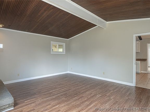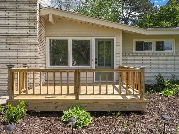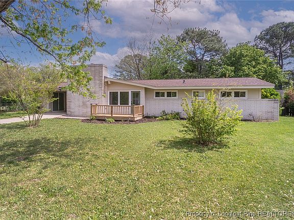 This 3 bedroom, 2 bath home with recently remodeled bathrooms is ready for you to move in today. This unique mid-century modern home is located on the end of a cul-de-sac. This welcoming home has new deck on the front and as you enter through the new front door, you will notice the large living room with a fireplace and bead board vaulted ceilings. Next, you will enter the kitchen and dining room area that also have vaulted ceilings with exposed beams. Opening from the kitchen/dining room area you will find a second living room with new flooring, a beautiful bay window and built in bookcases that could be used a family room. The freshly painted bedrooms are spacious with vaulted ceilings and have the unique triangle shaped windows distinctive to this type of home as well as regular windows you would see in a bedroom. The fully fenced backyard has a large patio area as well as 2 sheds. The covered carport also has two storage rooms that can accommodate all your storage needs. Your new home is also located near downtown Erwin, Campbell University, large retail shops, the Cape Fear River trail, and much more! AND it is just 45 minutes from Raleigh, an hour from RDU International Airport, and 35 minutes from Fort Bragg and Fayetteville Seller is offering $5000 in closing costs to buyer with acceptable offer