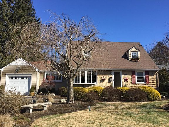 3 bedoorm Cape tucked away in a charming neighborhood. Wonderful open floor plan includes beautiful cathedral kitchen updated w/warm wood cabinetry, Center Island w/granite counters, ss appl. & built in desk. Cathedral family rm w/custom built ins, ideal for entertaining, open to kitchen w/French door to private patio. Living room displays picture frame custom woodwork & gas fireplace. Lovely dining room detailed w/dec. moldings as well. 1st floor master bedroom w/WIC; two bedrooms & an updated full bath on the 2nd floor. Fin. bsmnt w/additional family room, work out area & laundry rm. Private patio w/outdoor hot tub surrounded by professional landscaping, front & back! Close to town, shops & fine dining w/access to all major transportation including NJ Transit. Make this your new home!