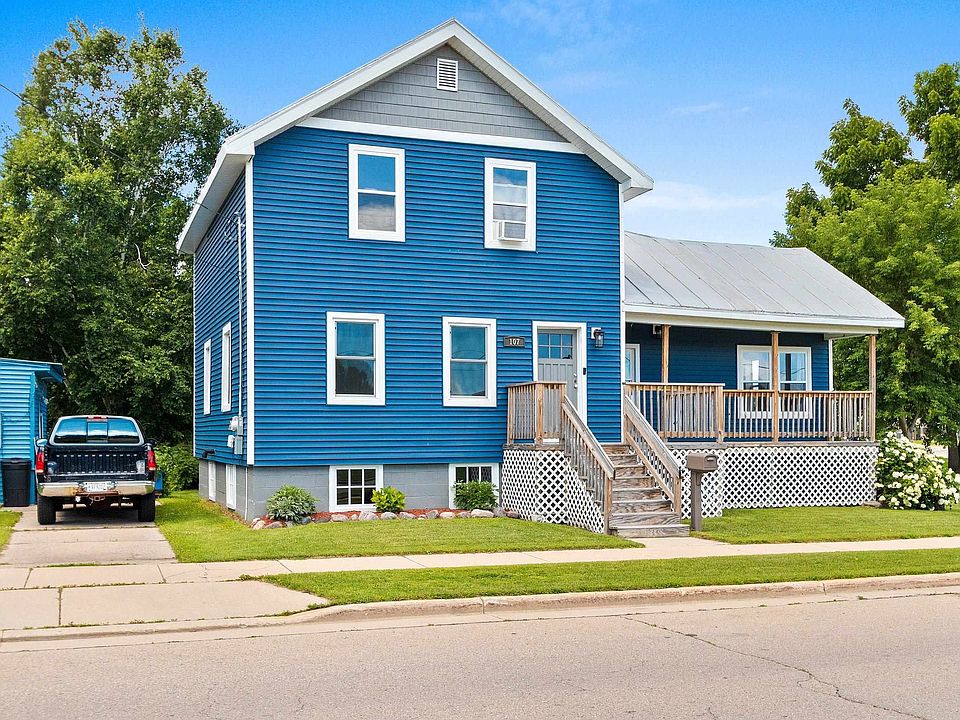 Welcome to this fully renovated 4-bedroom, 2-bathroom home located in the heart of Oconto! Step inside to an inviting open-concept main level featuring a spacious kitchen with a massive island. The adjacent dining area flows seamlessly, making the space bright and functional. A private laundry room adds convenience and efficiency to your daily routine. With two bedrooms and a full bathroom on each level, this home provides a flexible and practical layout that accommodates a variety of living needs. Enjoy the outdoors from multiple angles with a covered front porch, a generous side porch, and an upper-level deck offering peaceful views of the Oconto River — the perfect spots for relaxing or entertaining guests. Inside, the home showcases upgraded finishes, including new wood flooring.