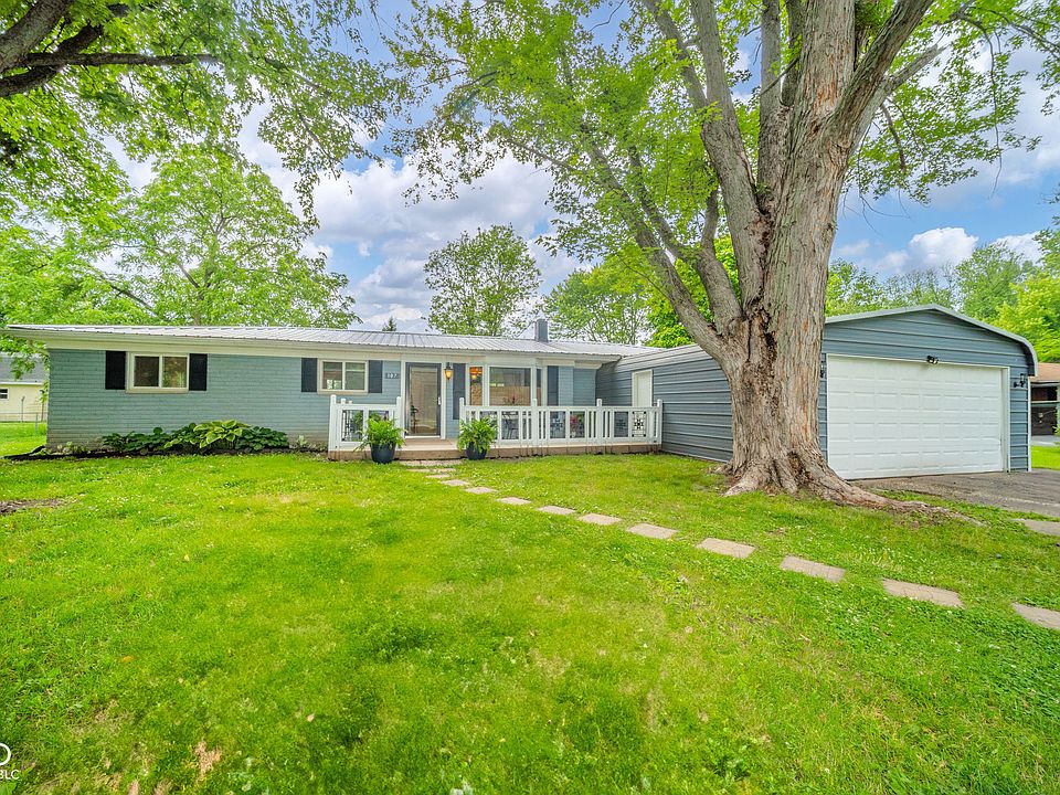 Back on the market with a brand new roof! Relax on the porch in the shade & enjoy the afternoon. This fully updated 3 bedroom, 1 bath ranch is located on a 1/2 acre lot on a quiet, shady street. Kitchen has been tastefully updated with Fantasy Brown Granite counters and a granite sink. Plenty of storage with a custom pantry and recessed refrigerator. Flooring and paint was updated at the end of June. The primary bedroom is oversized and features a walk-in closet and private access to the bathroom. Includes main level laundry and 3 garage bays for plenty of work space and storage. Easy access to downtown Noblesville. Sewer line was recently updated to connect to city sewer. Yard has been graded & seeded.
