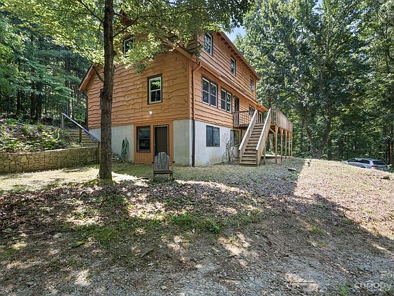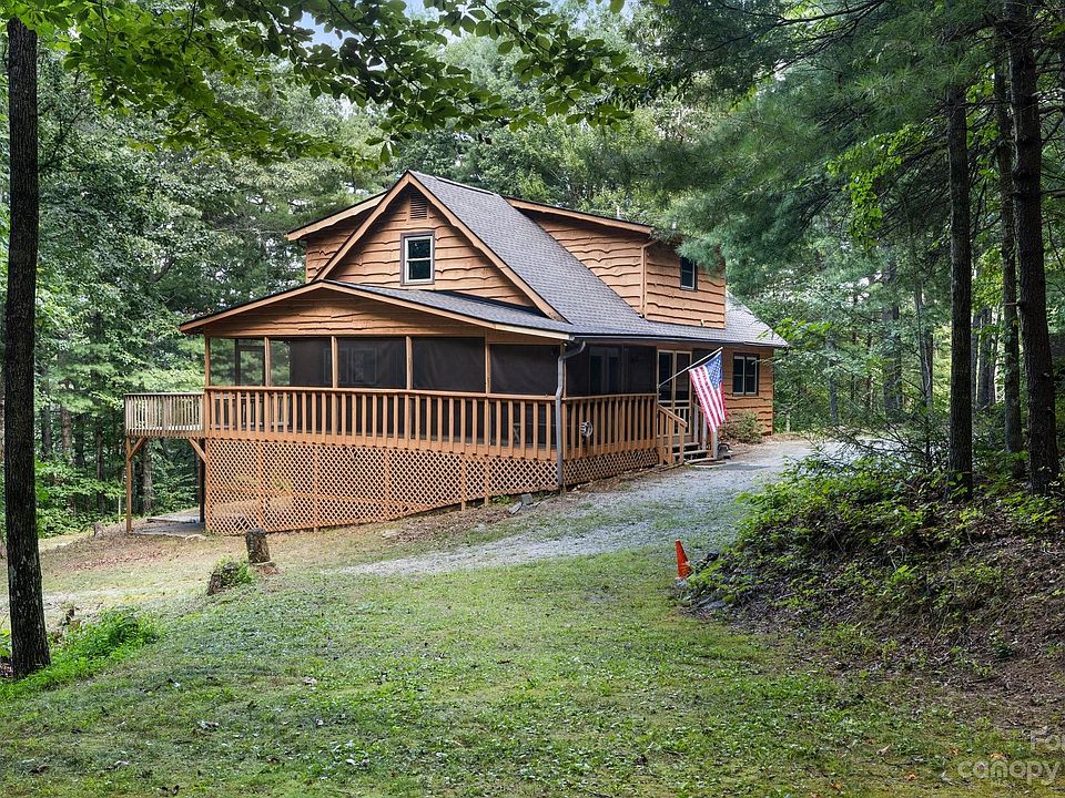 Great Saluda location! Conveniently located off scenic Macedonia Road, this cabin is tucked in at the end of a long driveway circles around the house. 2 acres that's primarily wooded. Primary bedroom and bath are on the main level with additional bedrooms, full bath, and bonus space upstairs. There's a full basement that offers plenty of usable space, storage, and a workshop. The large covered screened in porch with swing included has room for the whole family to sit and enjoy the tree frogs. Open back deck with stairs that lead you to the back of the property. Enjoy the oversized detached two car garage, and beautiful woods surrounding the property. This property has been in the same family since it was built and used as a vacation home. Conveniently close to Saluda's downtown with restaurants and shopping or a short drive to Hendersonville.