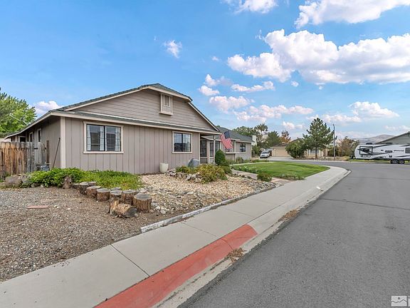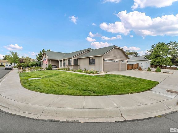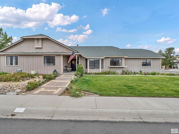 Discover this charming single-family home at 107 Pebble Dr, Dayton, NV 89403. Built in 1989, this residence offers 2,018 square feet of living space, featuring 4 bedrooms and 2 bathrooms. The interior boasts a spacious living room with high ceilings and a cozy fireplace, seamlessly connecting to a great room that includes the dining area. The kitchen is well-appointed with a gas range, built-in dishwasher, microwave, and a convenient island, a breakfast nook. Also a laundry room with Sink & Cabinets., Situated on a large corner lot, the exterior is fully landscaped with automatic sprinklers and a fenced backyard. Outdoor amenities include both covered and uncovered patios, perfect for relaxation or entertaining. The property also offers a three-car attached garage with RV parking capabilities. Located in a desirable neighborhood, this home is conveniently close to local schools, and recreation. With its blend of comfort and functionality, 107 Pebble Dr presents an excellent opportunity for those seeking a welcoming home in Dayton. Inspections & Appraisal Complete.