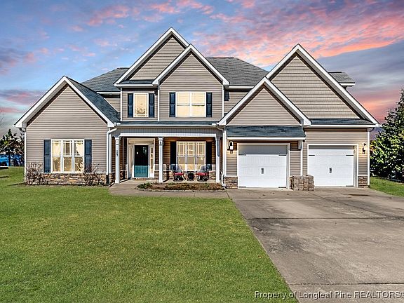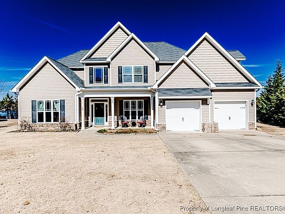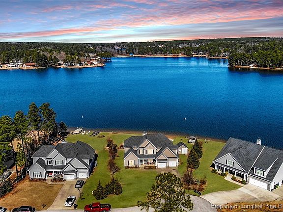 Experience luxurious lakeside living in this stunning waterfront home in Lakeside Manor at Carolina Lakes! Situated on 0.39 acres with an impressive 156+ feet of lake frontage, this 6-bedroom, 4.5-bath home offers breathtaking views & direct access to the water w/ its private beach, bulkhead, & boat dock. Spanning over 3,600 sq ft, this home is designed for comfort & elegance. The main-level master suite features a retreat overlooking the lake, while the formal dining room boasts coffered ceilings & stately columns. The chef’s kitchen is a dream, complete with a peninsula island, granite countertops, a double oven & gas range, & a built-in desk. A wood-burning fireplace in the LR adds warmth & charm. The outdoor space is just as impressive, featuring Bermuda sod, irrigation system, & a retractable awning over the rear patio—perfect for enjoying the serene waterfront views. Located just across the lake from the Marina, offering a front-row seat to the annual 4th of July fireworks show.