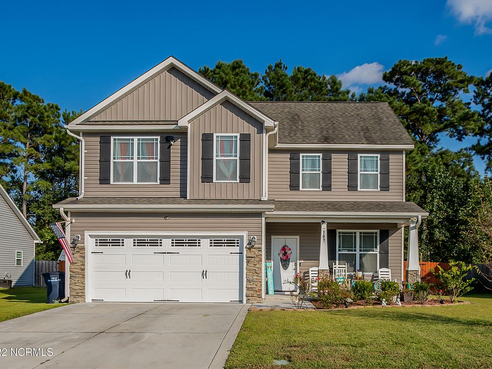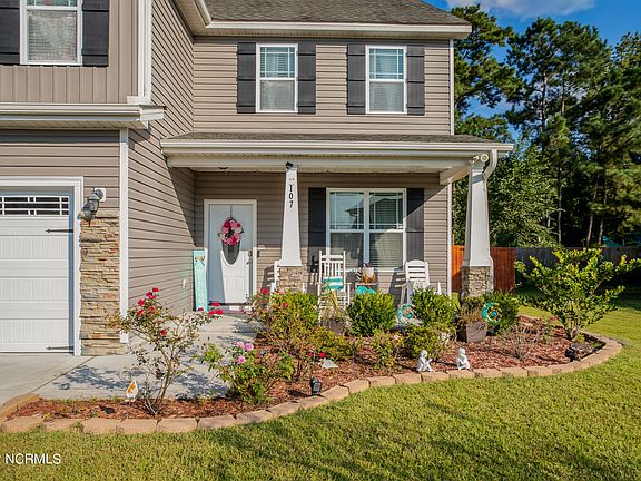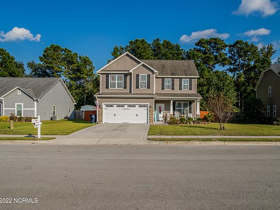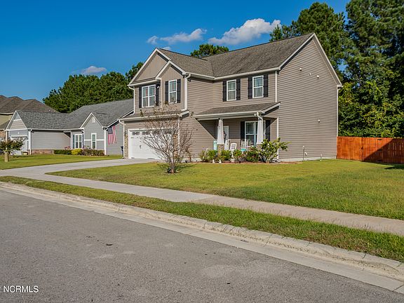 Beautiful, well-maintained, 2015 Wynn Built - Roxbury floor plan home in Williamsburg Plantation is sure to impress! All rooms have recently been professionally painted. Very nice formal dining room with trey ceiling, crown molding. and hard wood floors. Kitchen features granite counter tops and stainless steel refrigerator with a bay window for extra room for guests to dine. Spacious master bedroom and bathroom with dual vanities, garden tub, and walk-in shower. You will find the fourth bedroom to be a great space to store your extra shoes and belongings that you love as it features three different closets. Have coffee under the covered front porch or enjoy those nights grilling out in your backyard with a privacy fence. A recently built 12 x 10 shed will be a great place for storage. You will be pleased with the location as this home is very convenient to shopping, schools, and restaurants. Less than 10 miles from main gate Camp Lejeune