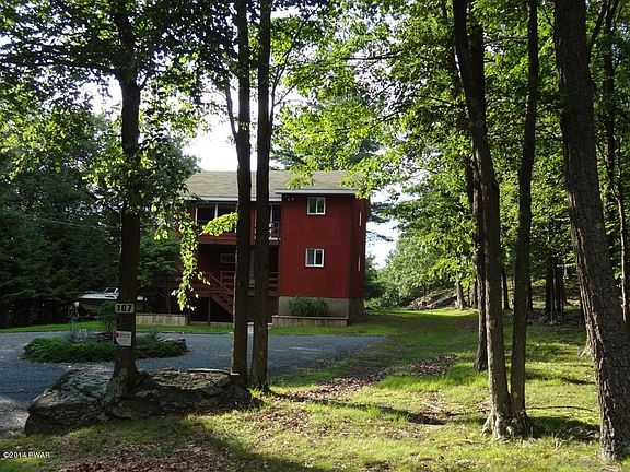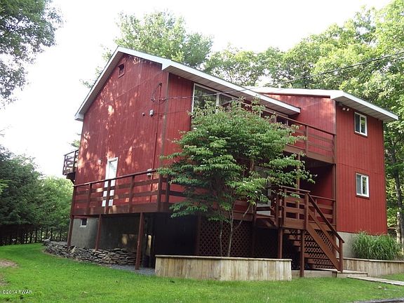 Located in NE PA, on a quiet road, at the end of a cul-de-sac in the Tanglwood North Community, this property features 4 bedrooms, 2 baths, and open floor plan with nice kitchen, living room with woodburning stove, family room & multiple decking to entertain family & friends. Only 2 hours from NYC. Great value.